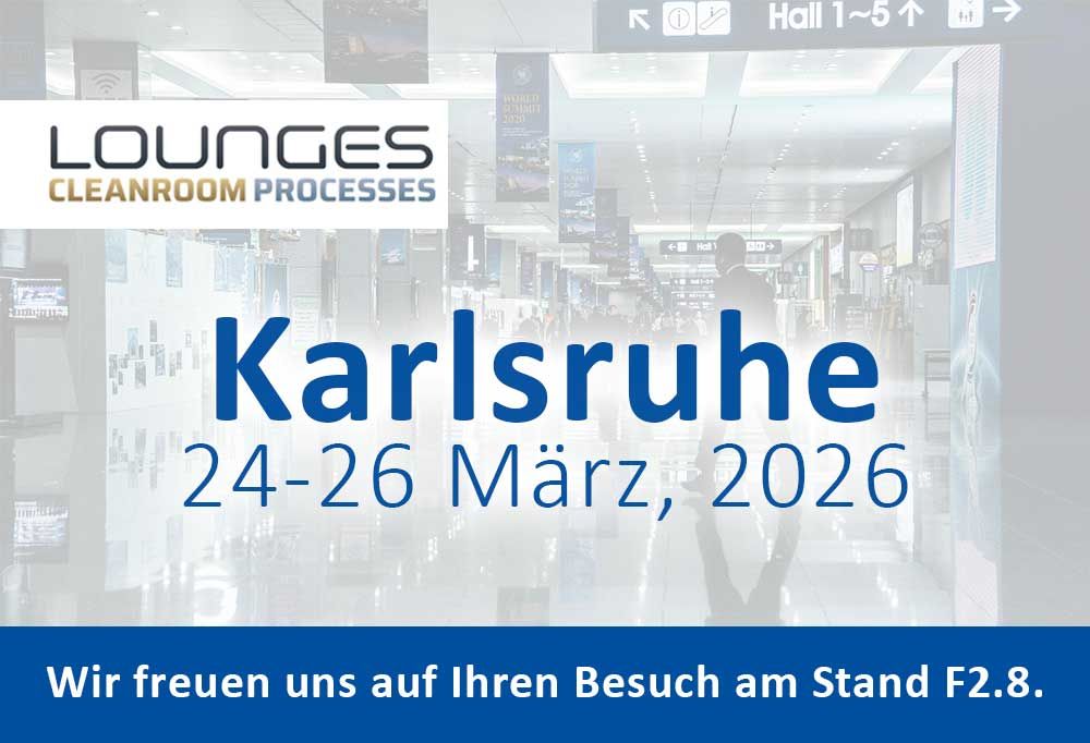 Besuchen Sie uns auf der LOUNGES Cleanroom Processes vom 24. bis 26. März 2026 auf der Messe Karlsruhe am Stand F2.8.